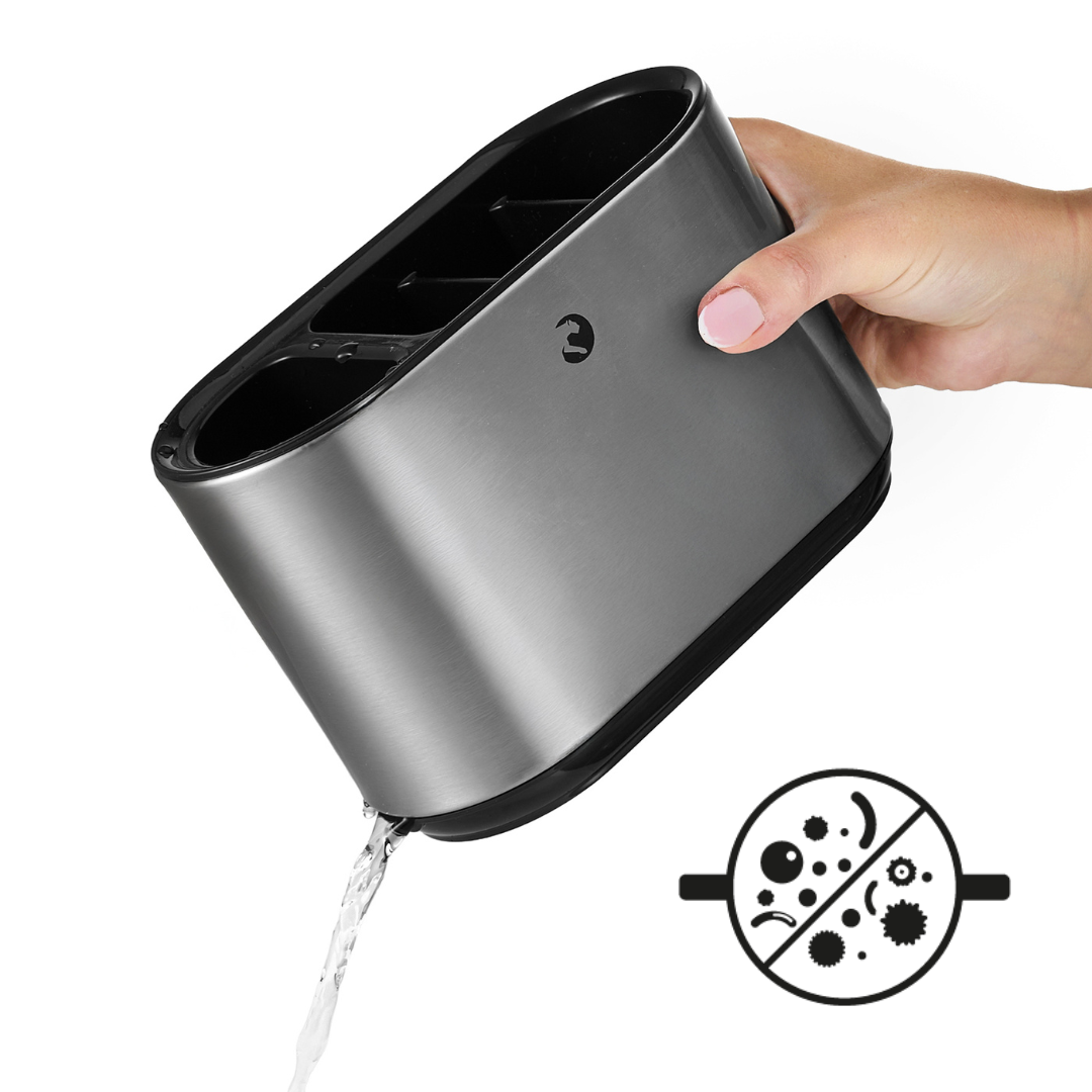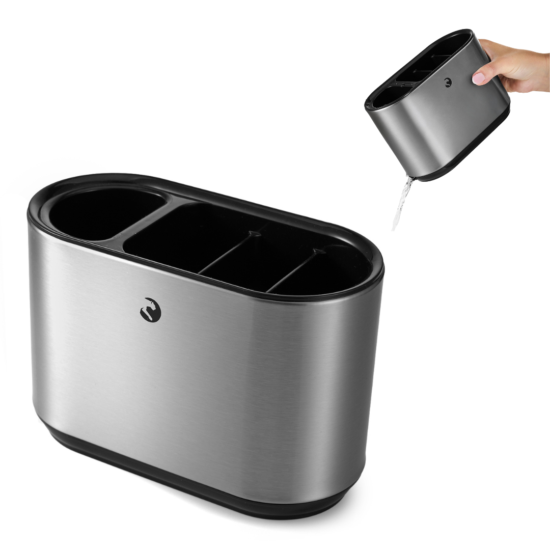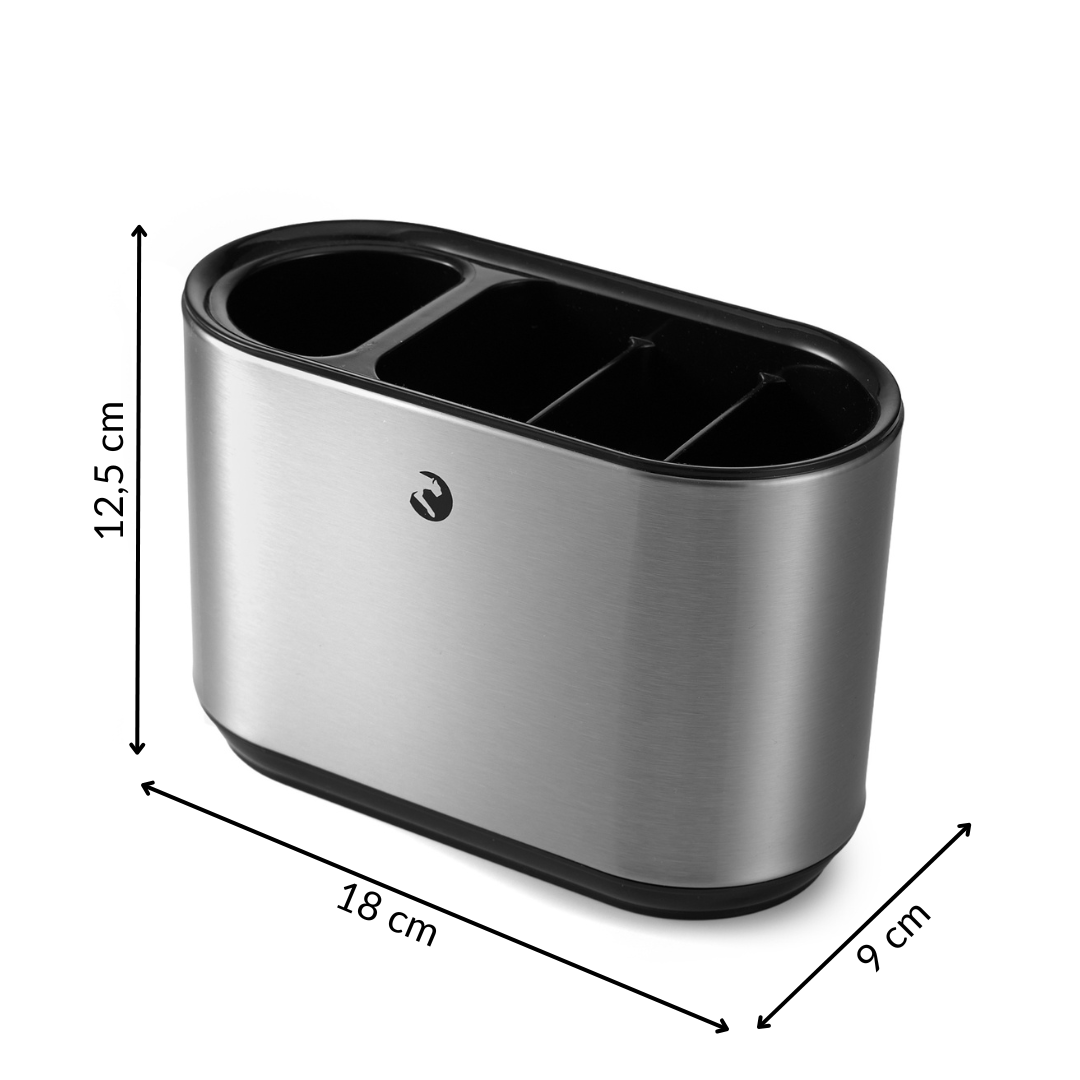 Ociekacz kuchenny na sztućce wykonany w całości ze stali nierdzewnej. Organizer kuchenny z pojemnikiem na noże i przybory, trwały, łatwy w czyszczeniu i odporny na korozję. Utrzymuje porządek w kuchni i zapewnia higienę sztućców.