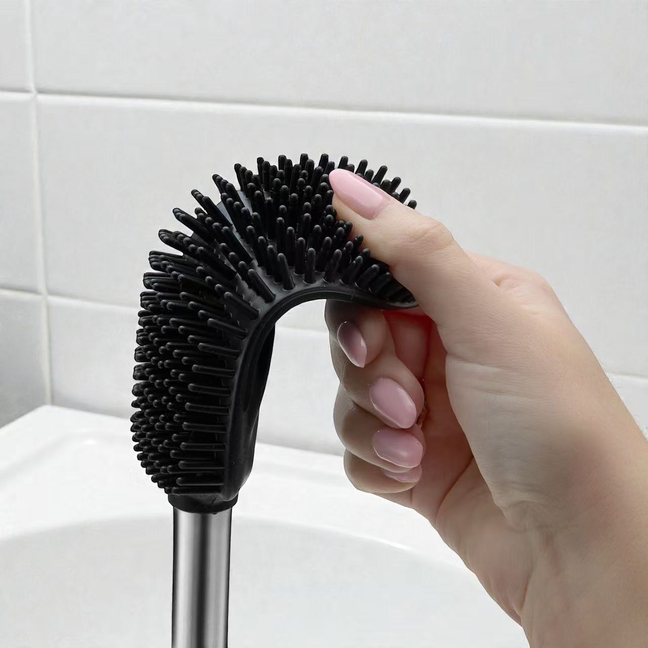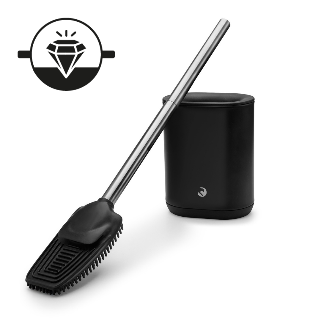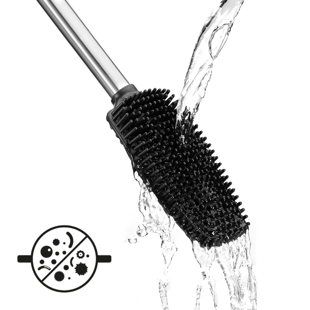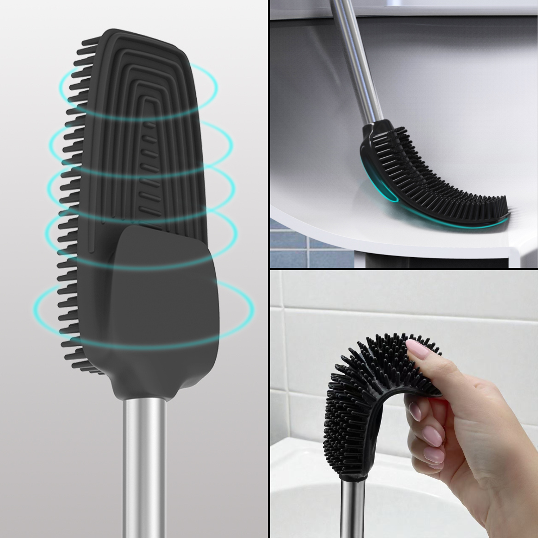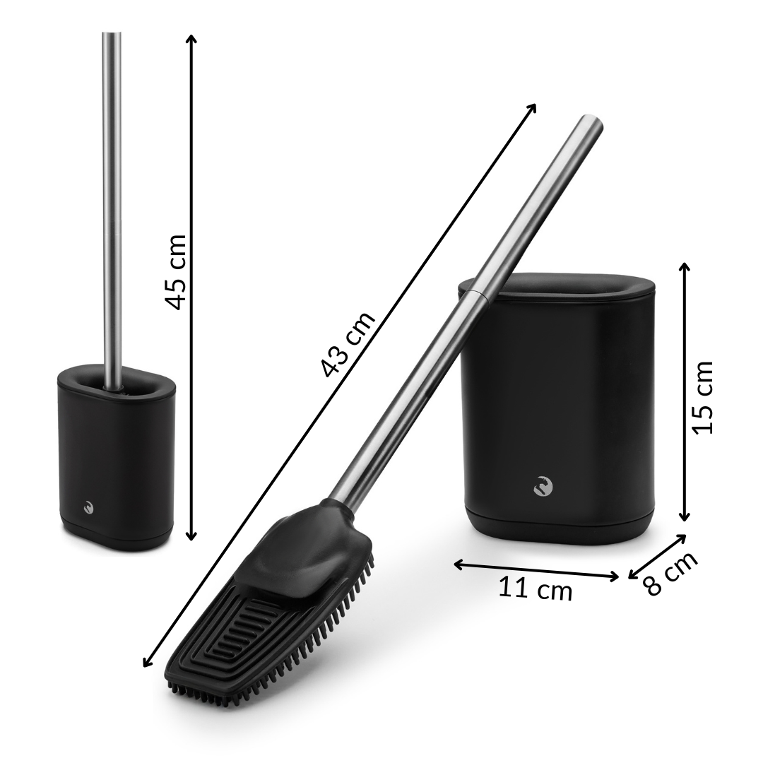 Nasza szczotka została wyposażona w innowacyjne, elastyczne silikonowe włosie po jednej stronie i żebrowaną powierzchnię po drugiej. Dzięki temu doskonale dopasowuje się do kształtu muszli, docierając w każdy zakamarek. Silikon nie rysuje powierzchni toalety i nie odkształca się nawet przy intensywnym użytkowaniu, a żebrowana strona ułatwia usuwanie trudniejszych zabrudzeń. Efekt? Szybkie i skuteczne sprzątanie oraz pewność długotrwałego użytkowania.